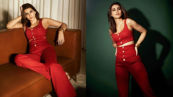 Kriti Sanon Captivates In Luxurious Cherry Red Co-Ord Set By Sanne