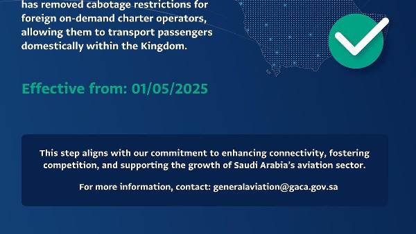 The removal of these restrictions is a crucial element of GACA’s strategy aimed at boosting competition and attracting foreign investment in the general aviation sector. The initiative also seeks to provide operators with more flexibility. This change aligns with GACA's roadmap introduced during the Future Aviation Forum in May 2024.