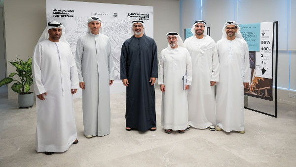 During the signing ceremony for this strategic partnership, Sheikh Khaled was joined by key figures including Khaldoon Khalifa Al Mubarak from Mubadala Investment Company, Mohamed Khalifa Al Mubarak from Aldar Properties, Waleed Al Mokarrab Al Muhairi from Mubadala Investment Company, Talal Al Dhiyebi from Aldar Properties, and Dr Bakheet Al Katheeri from Mubadala’s UAE Investments Platform.
