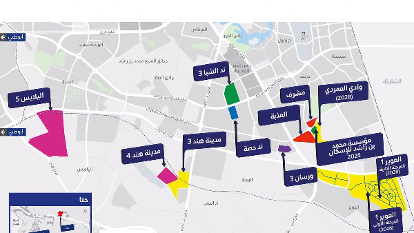 In Hatta, additional internal roads will support another Mohammed bin Rashid Housing Establishment project comprising 100 housing units. By 2026, RTA plans to construct 92 km of internal roads in Nadd Hessa and Al Awir 1. The following year will see the development of 45 km of roads in Al Athbah, Mushrif, and Hatta, along with an additional 14 km in Warsan 3 (Industrial Area).