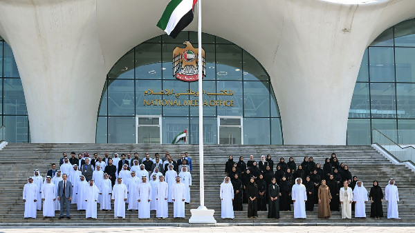 The National Media Office (NMO) and the Emirates News Agency (WAM) celebrated Flag Day by raising the UAE flag at their Abu Dhabi office. Employees participated in this event, showcasing their loyalty to the national symbol and pride in their leadership. This occasion highlighted their sense of belonging and commitment to the country's values.