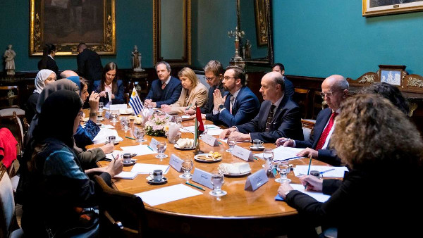 At a roundtable at the Uruguayan Ministry of Foreign Affairs, Al Hashimy met with Dr. Nicolás Albertoni, Deputy Minister of Foreign Affairs of Uruguay; Fernando Sandín, Director of Political Affairs; Ambassador Gabriela Civila, Director of International Cooperation; Ambassador Ana Inés Rocanova, Director of Economic Affairs; and a wider team. They discussed the successful first round of Political Consultations held during his visit to the UAE on 27 February 2024.