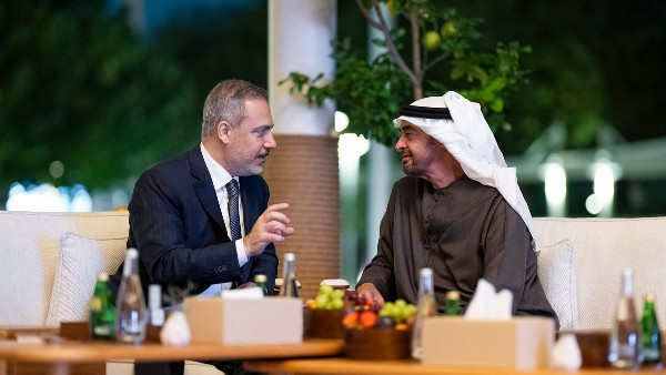 UAE President His Highness Sheikh Mohamed bin Zayed Al Nahyan and Türkiye's Foreign Minister, His Excellency Hakan Fidan, recently engaged in discussions to enhance cooperation between their nations. This dialogue reflects the strategic partnership that binds the UAE and Türkiye. During the meeting, His Excellency Hakan Fidan conveyed greetings from Türkiye's President, His Excellency Recep Tayyip Erdogan, along with wishes for the UAE's continued progress and prosperity.