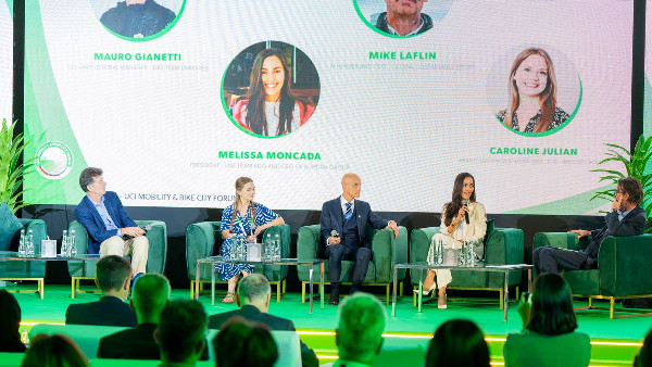 A panel discussion titled "Cycling towards a sustainable future" featured Melissa Moncada of UAE Team ADQ and Mauro Gianetti from UAE Team Emirates among others. They discussed strategies for promoting sustainability within cycling communities globally.