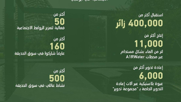 The Park embraced sustainability through various initiatives aligned with UAE Environment Vision 2030. Six workshops educated visitors on conservation efforts while partnerships with Tadweer Group facilitated recycling through Reverse Vending Machines collecting aluminum cans and plastic bottles.