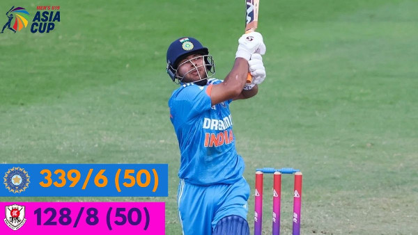 Karthikeya KP contributed a brisk 57, while Ayush Mhatre added a steady 54. Together, they helped India reach a formidable total of 339/6, marking the third-highest score in U19 Asia Cup history. Hardik Raj's explosive 12-ball 25 provided a vital finish, with India scoring 27 runs in the final two overs.