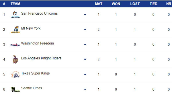 San Francisco Unicorns Top MLC Points Table After Defeating LA Knight Riders