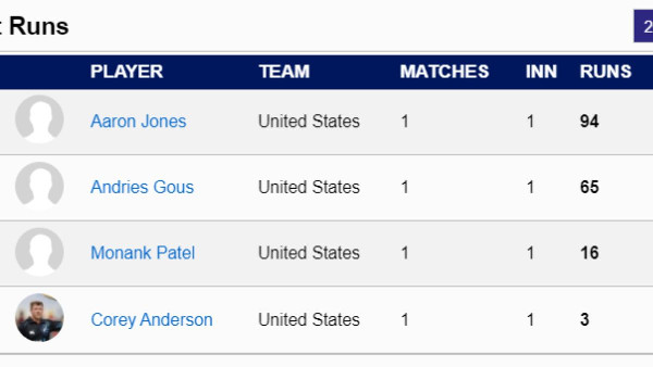 The T20 World Cup 2024 has kicked off with a thrilling match between co-hosts USA and Canada. The match witnessed a high-scoring encounter, with close to 400 runs being scored on the day. As the tournament progresses, let's take a look at the top run-scorers in the T20 World Cup 2024.Most Runs in T20 World Cup 2024: Top 10 highest Run-Scorers1. Aaron Jones (USA) - 94 runs2. Andries Gous (USA) - 65 runs3. Navneet Dhaliwal (CAN) - 61 runs4. Nicholas Kirton (CAN) - 51 runs5. Shreyas Movva (CAN) - 32 runs6. Aaron Johnson (CAN) - 23 runs7. Monank Patel (USA) - 16 runs8. Dilpreet Bajwa (CAN) - 11 runsThese batters have made a significant impact in the tournament so far, showcasing their skills and contributing to their respective teams' success.Teamwise Top Run-scorersFor USA:1. Aaron Jones - 94 runs2. Andries Gous - 65 runs3. Monank Patel - 16 runs4. Corey Anderson - 3 runsFor Canada:1. Navneet Dhaliwal - 61 runs2. Nicholas Kirton - 51 runs3. Shreyas Movva - 32 runs4. Aaron Johnson - 23 runs5. Dilpreet Bajwa - 11 runsThe T20 World Cup is just getting started, and there is still a long way to go before we find out who will emerge as the top run-scorer of the tournament. With exciting matches lined up, fans can expect more thrilling performances from these talented batters.In other news, the West Indies will begin their campaign in the T20 World Cup 2024 against Papua New Guinea (PNG) at Providence Stadium, Guyana. The West Indies, known for their explosive batting and versatile all-rounders, aim to reclaim their former glory. However, consistency has been their downfall in recent times. If they can address this issue, they have the potential to surprise the heavyweights in the competition and increase their T20 World Cup winners' tally.On the other hand, PNG enters the tournament with no expectations, being ranked 20th in the latest ICC T20I rankings. Their focus is on gaining experience and learning from facing formidable opponents. Tony Ura and Charles Amini are two players to watch out for in the PNG team. Ura is the only PNG batter to have scored a century in T20Is, while Amini, a leg-spinner, can pose a significant threat in Caribbean conditions if he finds his form.As the T20 World Cup 2024 unfolds, cricket fans can look forward to more exciting matches and outstanding performances from both established stars and emerging talents. Stay tuned for all the latest updates and action from the tournament.*Note: The information provided is accurate as of 02/96/2024 after the USA vs Canada match.*