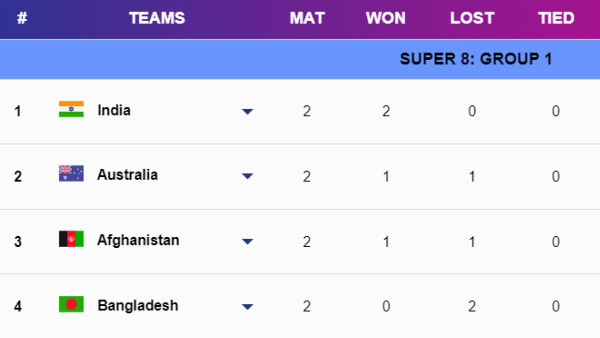 India secured their place in the Super 8 stage of the T20 World Cup 2024 by defeating Australia in their final match. This victory ensured India's advancement from Group 1. Meanwhile, Australia's future in the tournament hinges on the outcome of the Afghanistan vs Bangladesh match.