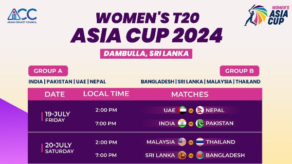 The Asian Cricket Council (ACC) has unveiled the schedule for the 2024 Women's T20 Asia Cup, which will begin on July 19 in Dambulla, Sri Lanka. This tournament will feature the top eight teams from Asia, divided into two groups.