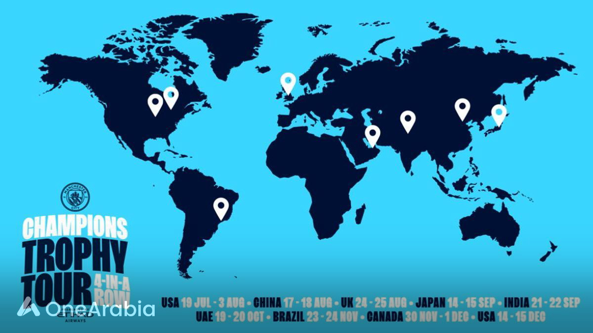 Manchester City has revealed the details of their 'Champions 4-In-A-Row Trophy Tour,' sponsored by Etihad Airways, to celebrate their fourth consecutive Premier League title. The tour include a stop in the UAE on 19th and 20th October 2024.