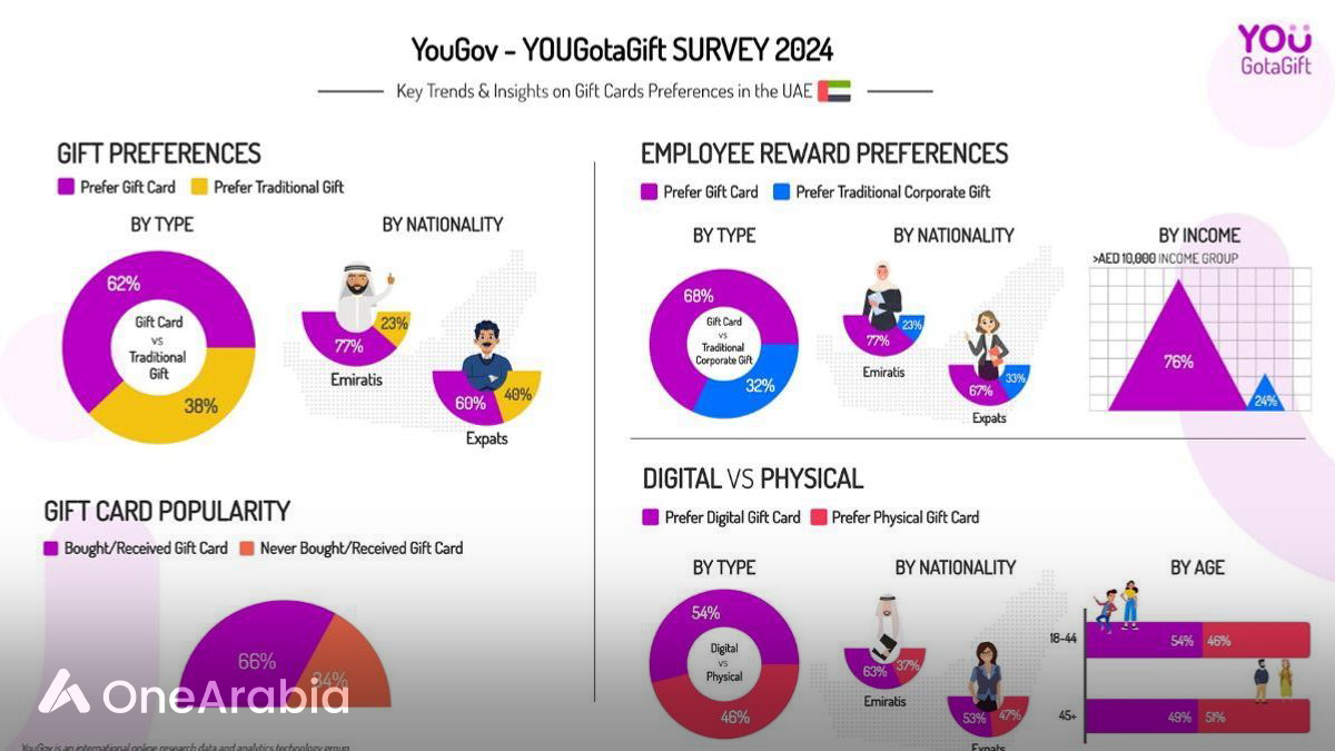 In a revealing study on consumer preferences within the UAE, an overwhelming majority of Emirati consumers, approximately 77%, have expressed a marked preference for gift cards over traditional gifting options. This trend leans significantly towards digital formats, with 64% of respondents favoring an eGift card over its physical counterpart. The study, a collaborative effort between YOUGotaGift, the leading digital gift card marketplace in the Middle East and North Africa (MENA), and YouGov, a globally recognized online research and data analytics firm, surveyed over 1,000 individuals across the UAE to gauge current gifting trends.