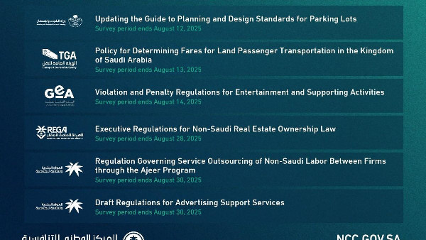 In the entertainment sector, the General Entertainment Authority is inviting public comments on ‘Violation and Penalty Regulations for Entertainment and Supporting Activities.’ The goal is to enhance the Kingdom’s entertainment sector by setting clear standards and improving oversight. Public consultation remains open until a specified deadline.