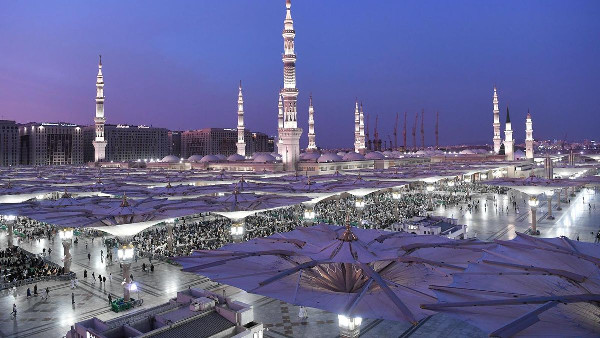 To accommodate large crowds, the northern, western, and southern courtyards of the Prophet's Mosque have been carpeted. Additionally, 250 umbrellas provide shade and protection from the sun. Over 437 fans attached to these umbrellas enhance comfort by ensuring a healthy environment for all worshipers.