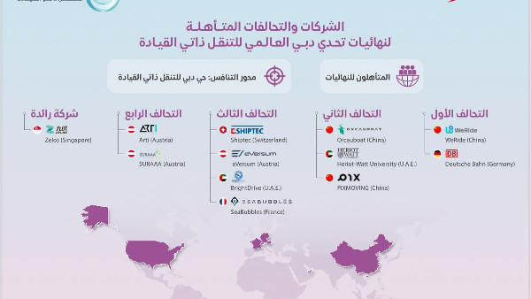 The winners will be announced at the Dubai World Congress and Challenge for Self-Driving Transport next September at the Dubai World Trade Centre. The decision was made by an international judging panel led by Dr. Steven Shladover, an expert in self-driving technologies. The finalists include the WeRide / Deutsche Bahn consortium from the UAE, Germany, and China; BrightDrive / eVersum / Shiptec / SeaBubbles from Switzerland, France, the UAE, and Austria; Orcauboat / PIXMOVING / Heriot-Watt University Dubai from the UAE and China; SURAA / Arti from Austria; and Zelos from Singapore.