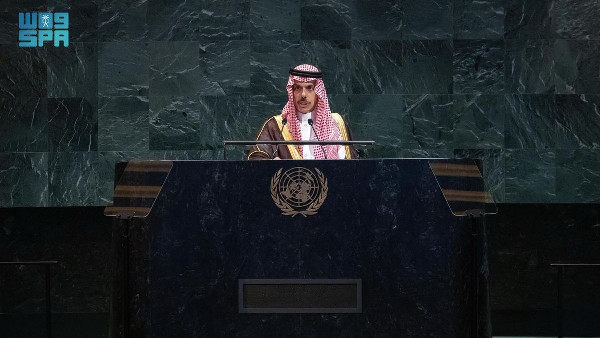 At the United Nations Headquarters in New York, Prince Faisal bin Farhan bin Abdullah, Minister of Foreign Affairs, delivered Saudi Arabia's address during a high-level conference on resolving the Palestinian issue and implementing the Two-State Solution. This event, co-chaired by Saudi Arabia and France, took place amid escalating violence affecting thousands of civilians through starvation, bombing, and displacement.