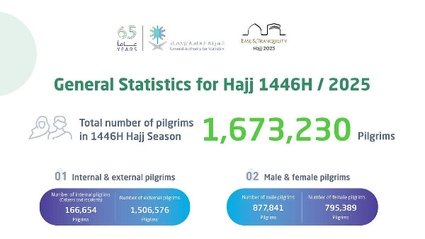 GASTAT Reports Total Of 1,673,230 Pilgrims For Hajj 1446 AH