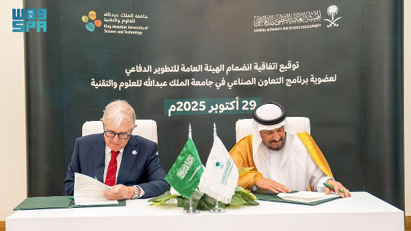 The General Authority for Defense Development (GADD) has entered into an agreement to join the Industrial Collaboration Program at King Abdullah University of Science and Technology (KAUST). This membership is designed to boost research and knowledge sharing, as well as develop technical and innovative capabilities in defense development.