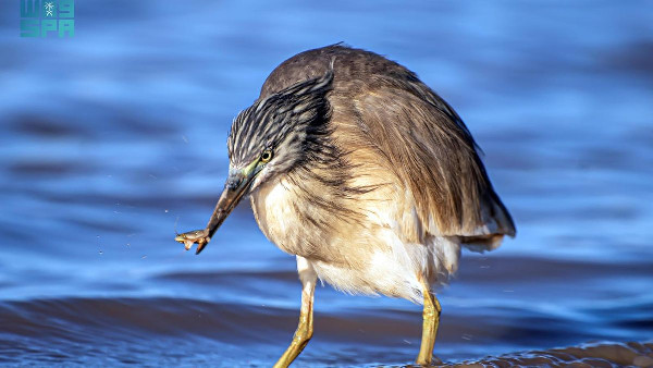Outside of breeding seasons, the golden heron may be seen alone. Breeding often occurs in reed marshes, on trees, and along lake and river shores. Khalifa highlighted that the Northern Borders Region is a significant route for migratory birds due to its strategic location connecting Old World continents. Its diverse environment attracts both migratory and resident bird species.
