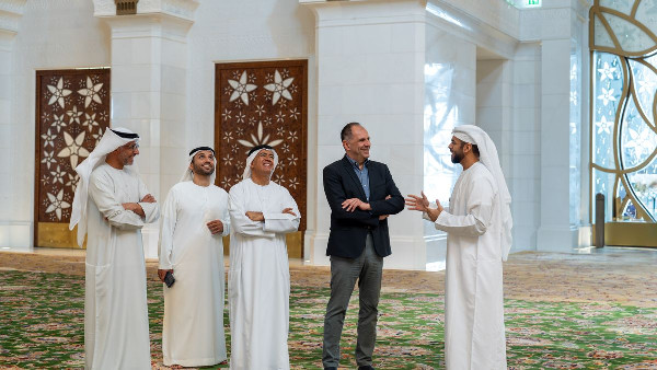 At the conclusion of their visit, Georgios Gerapetritis received gifts from the mosque. These included a compass inspired by its chandeliers and a copy of "Sheikh Zayed Grand Mosque: Lights of Peace." This book explores the mosque’s architectural style with award-winning images from the "Spaces of Light" Award.