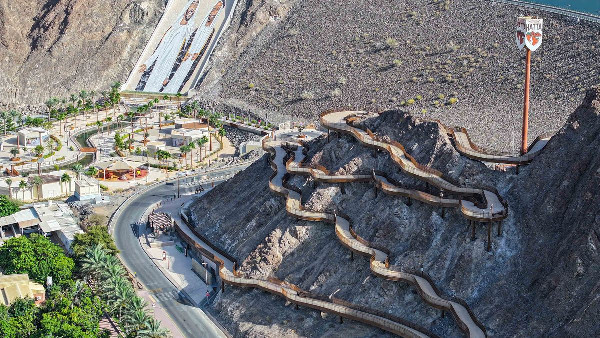 The newly constructed Hatta Dam Amphitheatre offers an accessible route to the dam's peak. Spanning 610 metres with six rest areas along its 37-metre ascent, it provides panoramic views and leisure activities like kayaking. Designed for comfort and accessibility, it preserves the natural landscape using suspended-structure techniques.