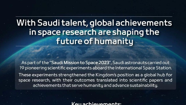 The Saudi Space Agency announced that 11 research papers and one patent had emerged from the Saudi space mission SSA-HSF1, launched in 2023. The output covered nine national and two international studies. The work drew on results from 19 scientific experiments carried out aboard the International Space Station by Saudi astronauts.