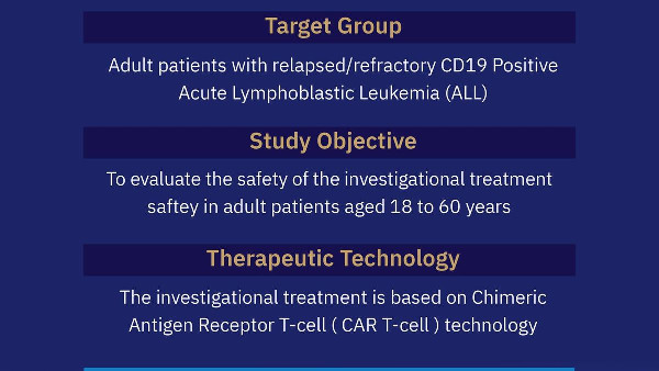 The investigational therapy is being developed by scientists at King Faisal Specialist Hospital and Research Centre (KFSHRC) in collaboration with Lentigen/Miltenyi Company. The treatment uses a closed transduction system and is manufactured within KFSHRC's internal unit. It is administered intravenously to patients, aiming to ensure safety for adults aged 18 to 60 years.