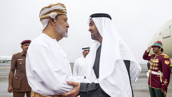 His Majesty Sultan Haitham bin Tariq of Oman welcomed His Highness upon his arrival at the Royal Airport.